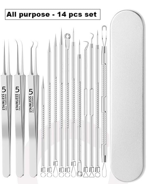 KINDS ANTI-SLIP DESIGN - 14 PCS blackhead extractor with a metal box, easy to organize storage and carry at any time, both clean and convenient. This blackhead extractor kits use a non-slip handle, which help you to stable control it to use and precision to avoid damage to the skin.