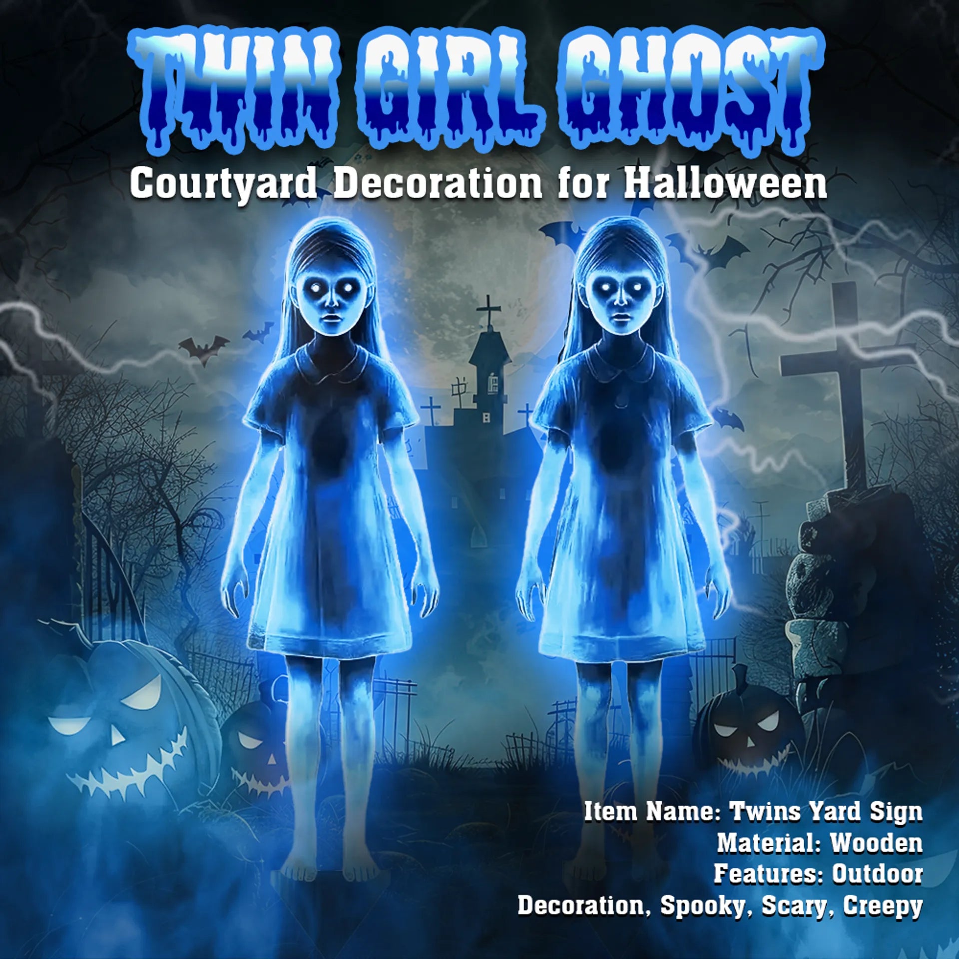 Her eerie blue glow, lifelike silhouette, and unsettling movements create the perfect horror-movie illusion right in your garden. Easy to set up, durable for outdoor use, and terrifyingly realistic, she turns your home into the one everyone remembers on Halloween night.